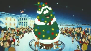 24 mins and we don’t get the classic O Christmas Tree song but one about Christopher the sad tree song, He wanted to spend Xmas with someone. Nobody wanted to choose him because he’s small and ugly. S they chop up the other pine trees. Then you have Hootie the owl that also leaves his house in shame for not knowing how to fly. They dance and play games with animals. Hootie ends up flying to save Christopher when he thinks he’ll be chopped up for wood. Chris becomes the president’s Christmas Tree. He is also named Christopher because of Christopher Colombus and Jesus Christ. Man what a dark ending, Hootie asks him if he isn’t sad it’ll be his first and last christmas since he’ll die since he’s chopped up and he says “no i was happy ot have been a christmas tree, you should help other trees grow so they can be christmas trees”.