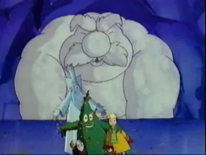 24 mins which makes this a good length for the story it’s telling. We get some nice Xmas lroe as King Winter brings winter to earth. A christmas tree decides to stand up to the north wind created by him and not lose its leaves. This tree becomes a rebel for being the one pine that doesn’t want to. A human acorn and a pinecone knome go to rescue the tree who has been imprissoned and is being guarded by polar bears. Santa Claus himself goes to help save them which is also howthe tree gets the origins for the christmas lights. It’s a good origin movie for such a lame plot. King Winer ends up liking the christmas tree, we get the classic oh christmas tree song. Piney and all his descendants will be green all year long.